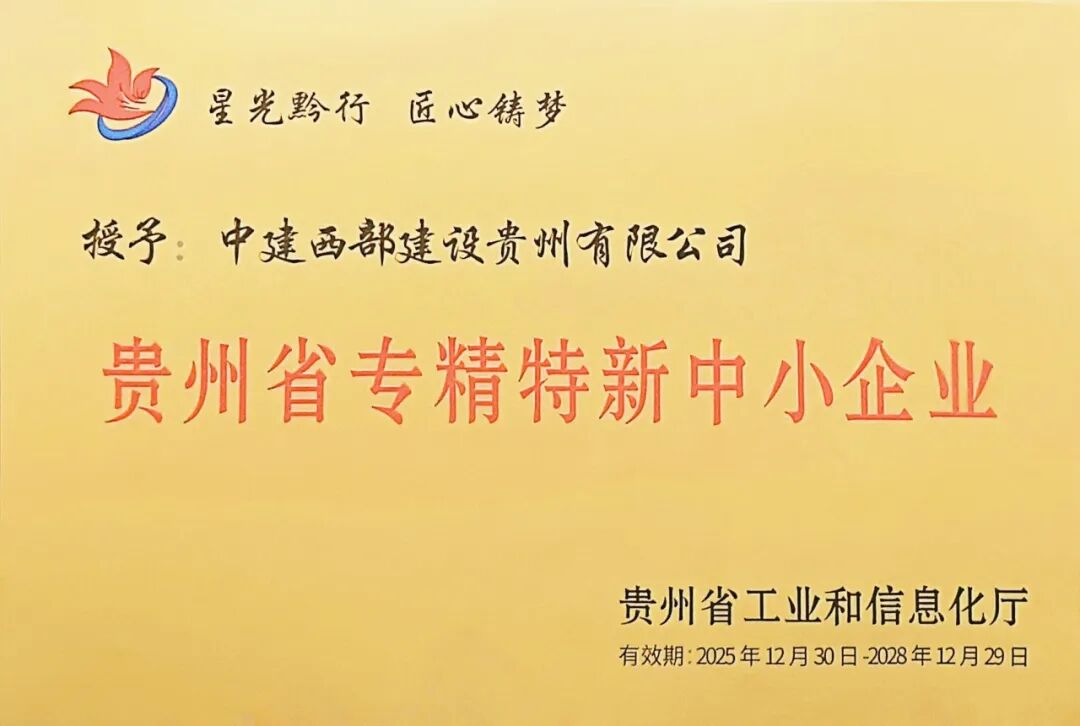 “十五五”启动首月,中建西部建设四公司贵阳厂(中建西部建设贵州有限公司)凭借其在新型建材领域技术创新能力和专业化优势,成功获评贵州省专精特新中小企业。