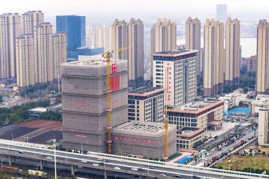 该项目位于合肥市长丰县,是安徽省重点公共卫生项目,项目采用“平战结合”模式,平时用于常规医疗,战时(突发公共卫生事件时)可快速转换为传染病防治基地。中建商砼合肥厂为该项目累计浇筑混凝土4万余方,期间攻克超深基坑浇筑、核心筒部位浇筑速控等技术难题,36小时完成5000余方高性能混凝土筏板浇筑。项目建成后,将新增720张床位,成为现代化综合性医疗服务中心。