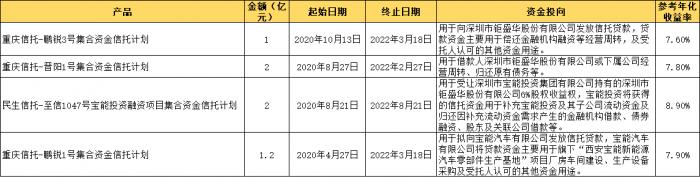 其中“五矿信托鑫玖77号集合资金信托计划”到期日是2021年11月20日,金额约为0.95亿元,该信托产品的资金投向是“用于受让位于昆明市官渡区的某楼盘A1-2地块形成的特定资产收益权,具体用于满足432条件的标的地块的建设开发。”