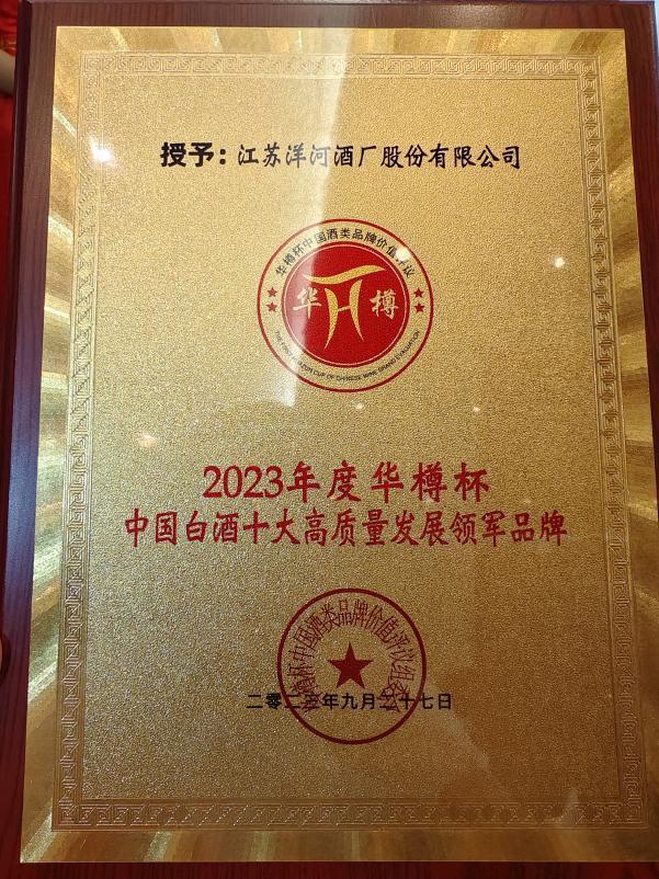 另外,组委会还授予洋河股份“2023年度华樽杯中国白酒十大高质量发展领军品牌、2023年度华樽杯世界名酒中国代表性品牌”、梦之蓝·手工班“2023年度华樽杯世界高端烈酒推荐品牌”。