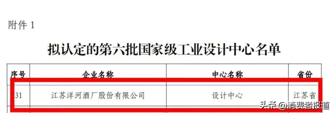 洋河股份获评国家级工业设计中心,用品质赢得消费者的认可与喜爱。