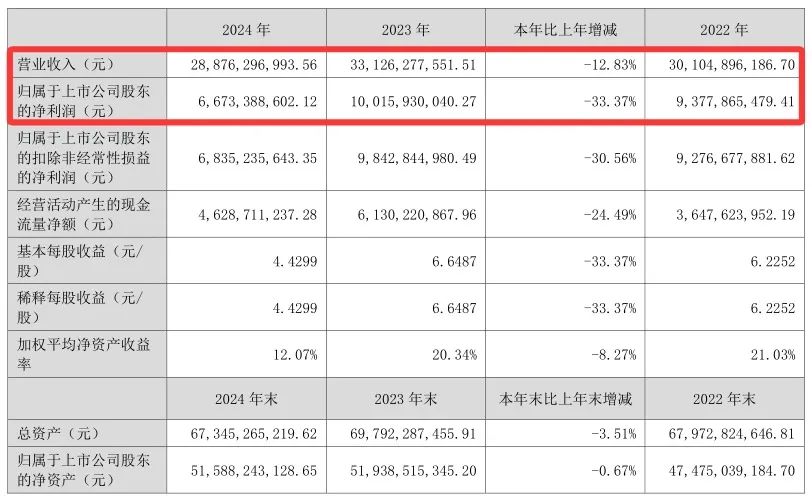 近日,洋河股份的“双降”年报引发舆论关注。4月29日,江苏洋河酒厂股份有限公司(以下简称“洋河股份”)发布2024年年报,公司收入、利润双双出现大幅下滑,均为上市以来最大跌幅。