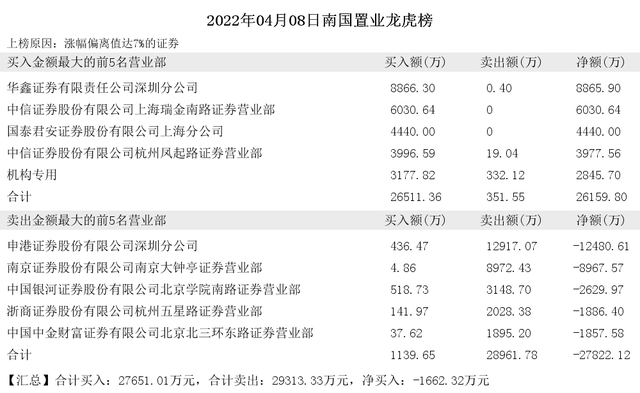 卖出前5席为:申港证券股份有限公司深圳分公司、南京证券股份有限公司南京大钟亭证券营业部、中国银河证券股份有限公司北京学院南路证券营业部、浙商证券股份有限公司杭州五星路证券营业部、中国中金财富证券有限公司北京北三环东路证券营业部。共计买入:1139.65万元,共计卖出:28961.78万元。