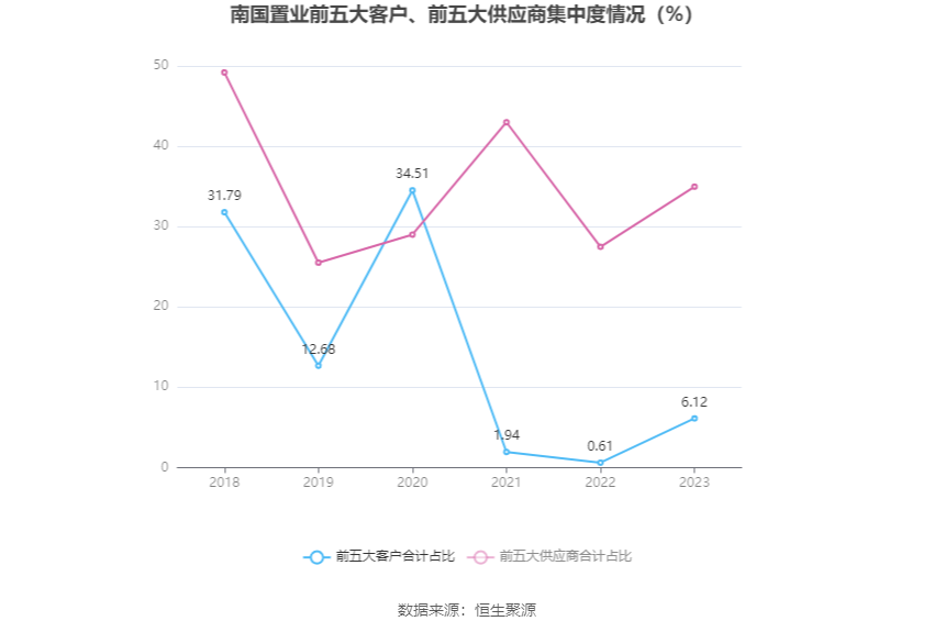报告期内,公司前五大客户合计销售金额0.65亿元,占总销售金额比例为6.12%,公司前五名供应商合计采购金额5.23亿元,占年度采购总额比例为34.97%。