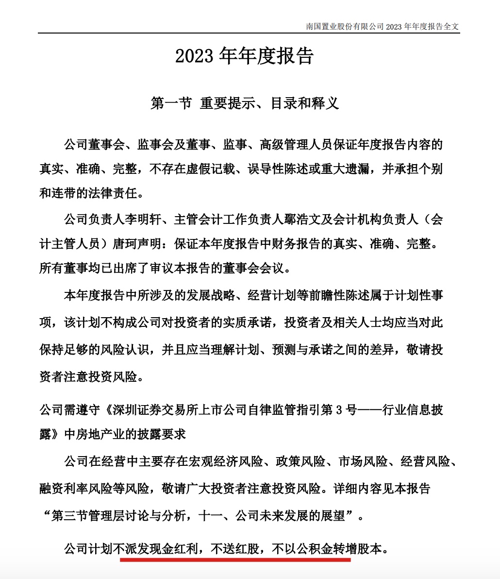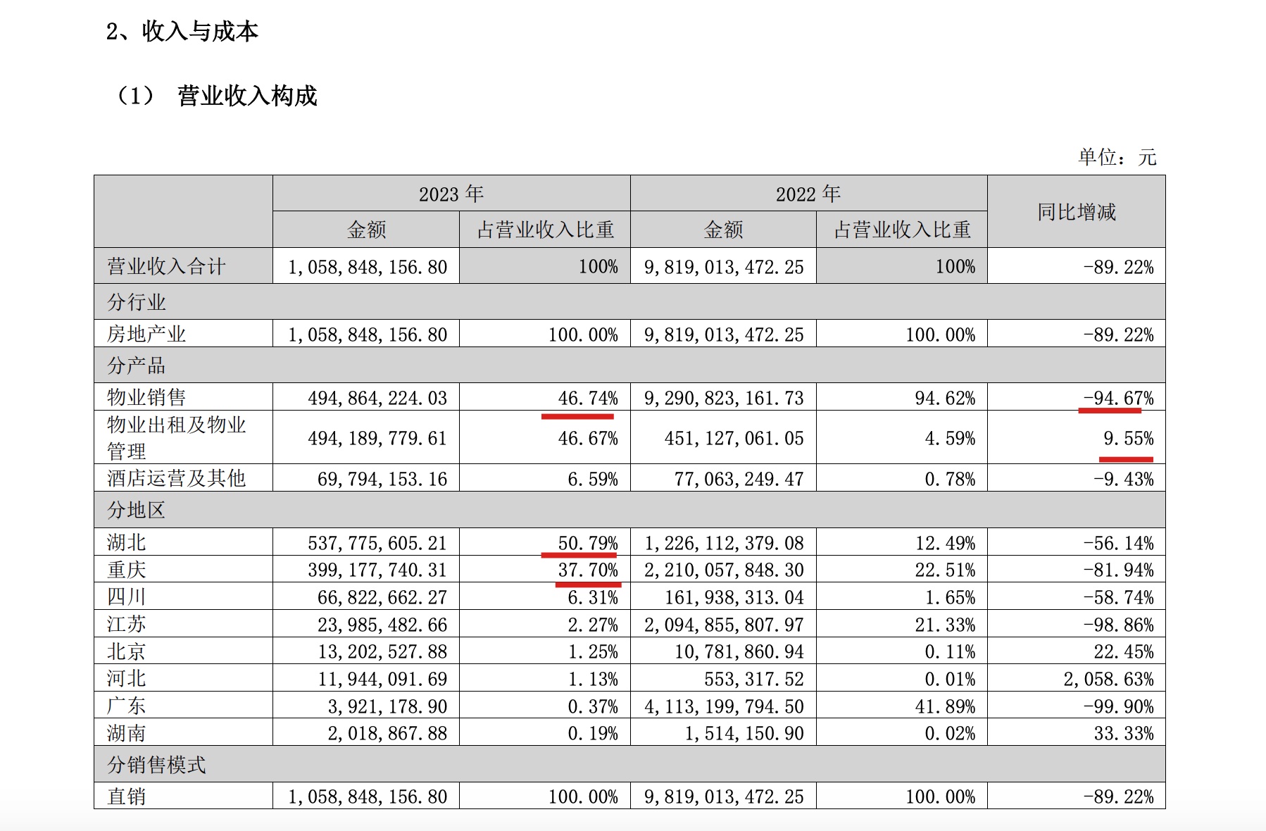 4月24日,央企电建地产旗下南国置业股份有限公司(南国置业,002305.SZ)发布2023年年度报告,提及2023年物业销售营收同比下降超九成、归母扣非净亏扩大至16.2亿元。