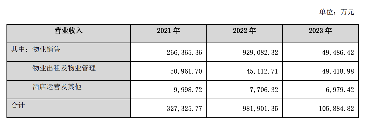 南国置业在回复中提到,公司2022年营业收入较上年上涨199.98%,2023年营业收入较上年下降89.22%,主要系物业销售收入变动影响所致。