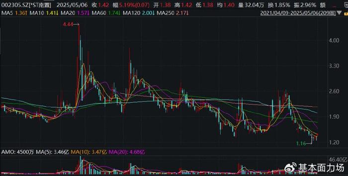 二级市场走势受到很多因素影响,股价走势分析也不是力场君擅长的。姑妄言之,*ST南置不跌反涨的原因可能是此前低迷了很长一段时间的行情,已经充分消化了被ST的预期,毕竟在今年1到3月已经三次公告了风险提示,截止到4月30日之前,年内的累计跌幅已经超过了三分之一,徘徊于历史最低价的位置。