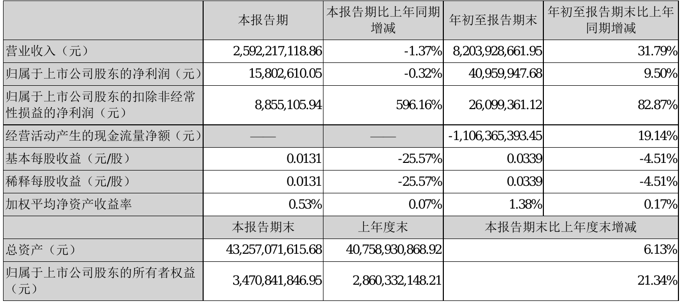 北新路桥(002307)近日发布2021年前三季度报告,报告期内营业收入8,203,928,661.95元,同比增加31.79%;净利40,959,947.68元,同比净利增加9.50%。