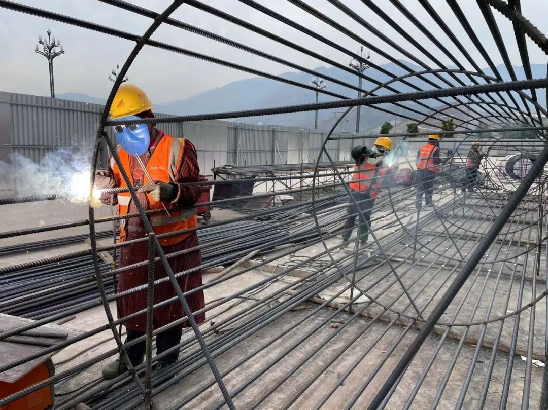 走进项目施工现场,机器轰鸣“奏乐”,现场钢筋绑扎、模板支设、混凝土浇筑,敲打声、吆喝声此起彼伏,一幅大干快上的繁忙景象。