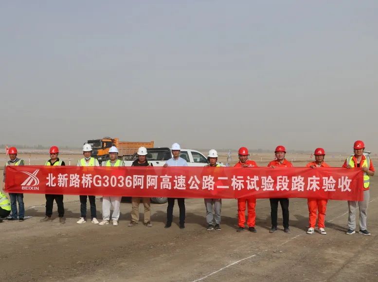 近日,G3036阿克苏至阿拉尔高速公路首个试验段路床顺利完成验收,标志着阿阿高速二标项目部完成又一重要节点目标,为后续风积沙路基大面积施工奠定了良好基础。