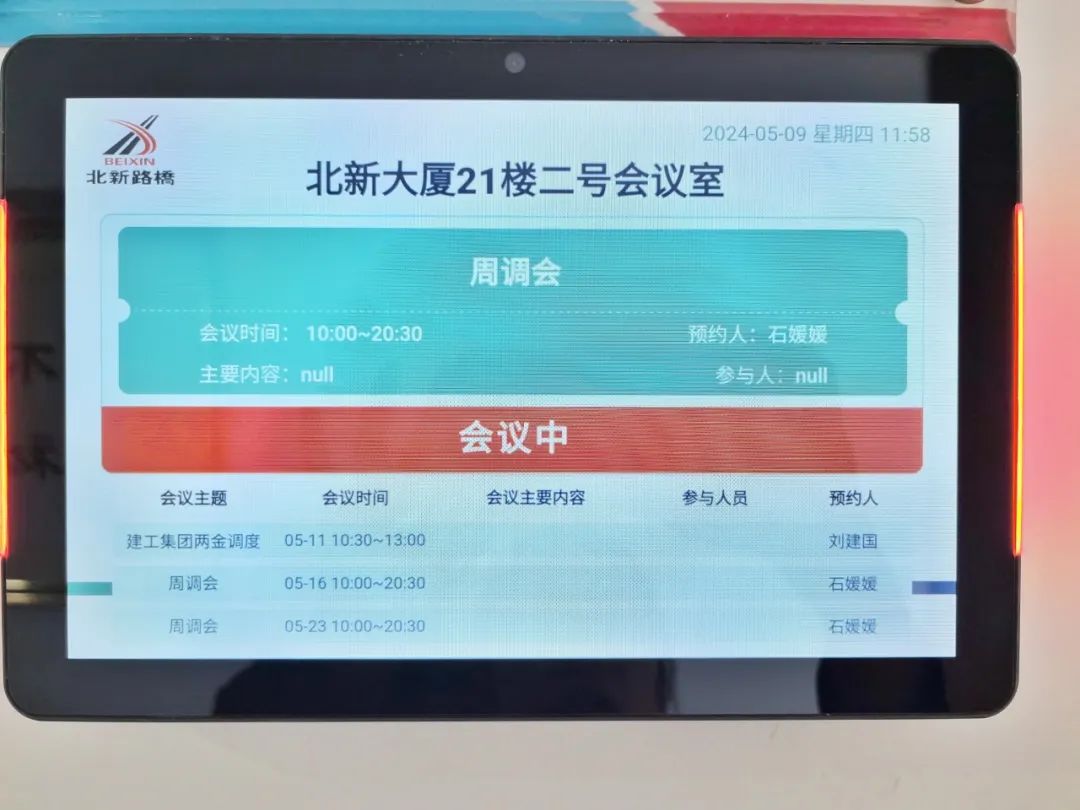 5月8日,北新路桥集团实施“智慧会议门牌”安装项目,将会议门牌从“会议室的身份证”转变为“会议室的电子身份证”,“智享”便利办公。