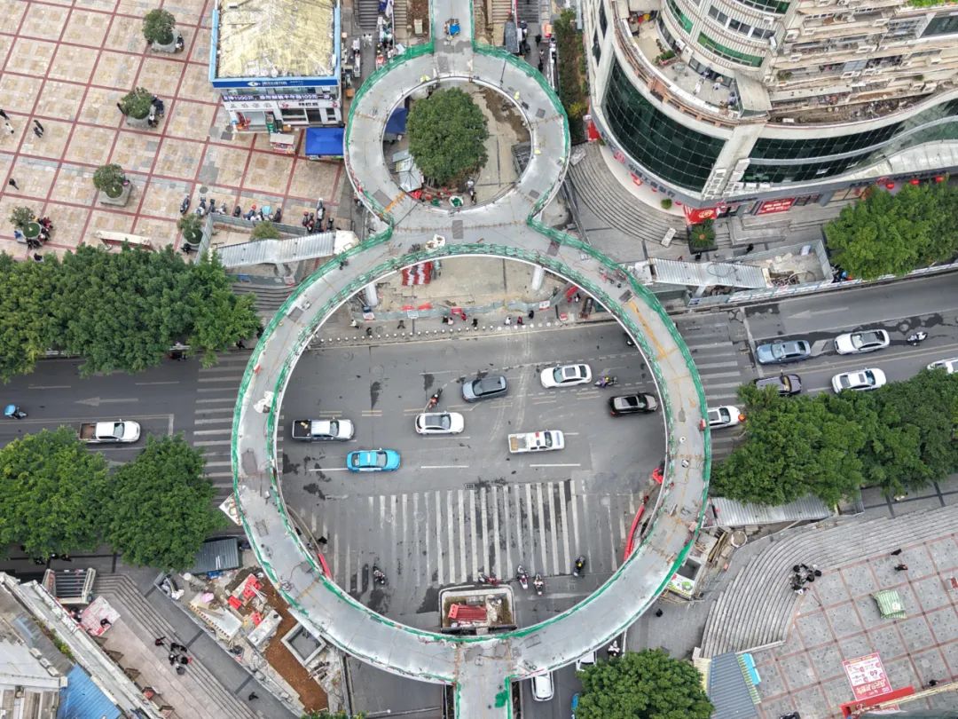 广东路“8”字型人行天桥钢箱梁顺利吊装完成