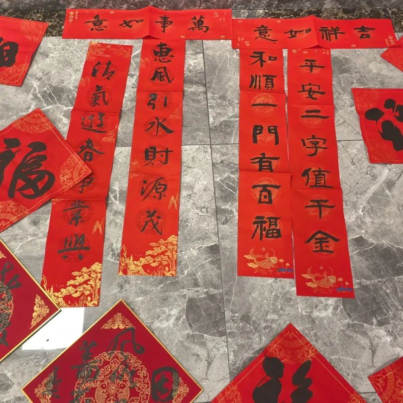 活动现场,书画家们以笔寄情,以墨抒怀,笔锋游走间,一幅幅寓意吉祥的春联、一个个饱含祝愿的“福”字跃然纸上,瞬间吸引了北新路桥广大职工前来围观。