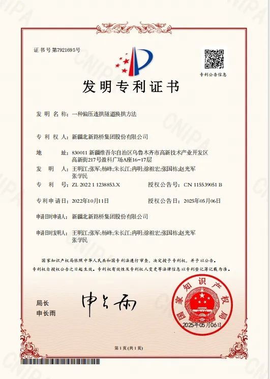 “此项专利的授权,是集团落实科技创新、发展新质生产力的有效举措。”该集团技术负责人表示。“近年来北新路桥集团科技研发投入及科技成果转化率均在逐年递增,已累计授权发明专利38项,实用新型专利百余项,参与编制各类标准规范18项。”此次专利的授权,进一步巩固了集团在复杂隧道工程领域的竞争力,未来,北新路桥集团将继续以创新为引擎,以品质为基石,切实提升集团核心竞争力,为集团高质量发展提供有力支持。