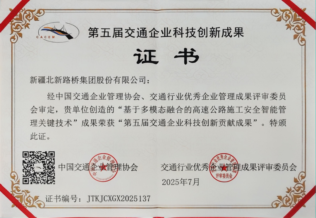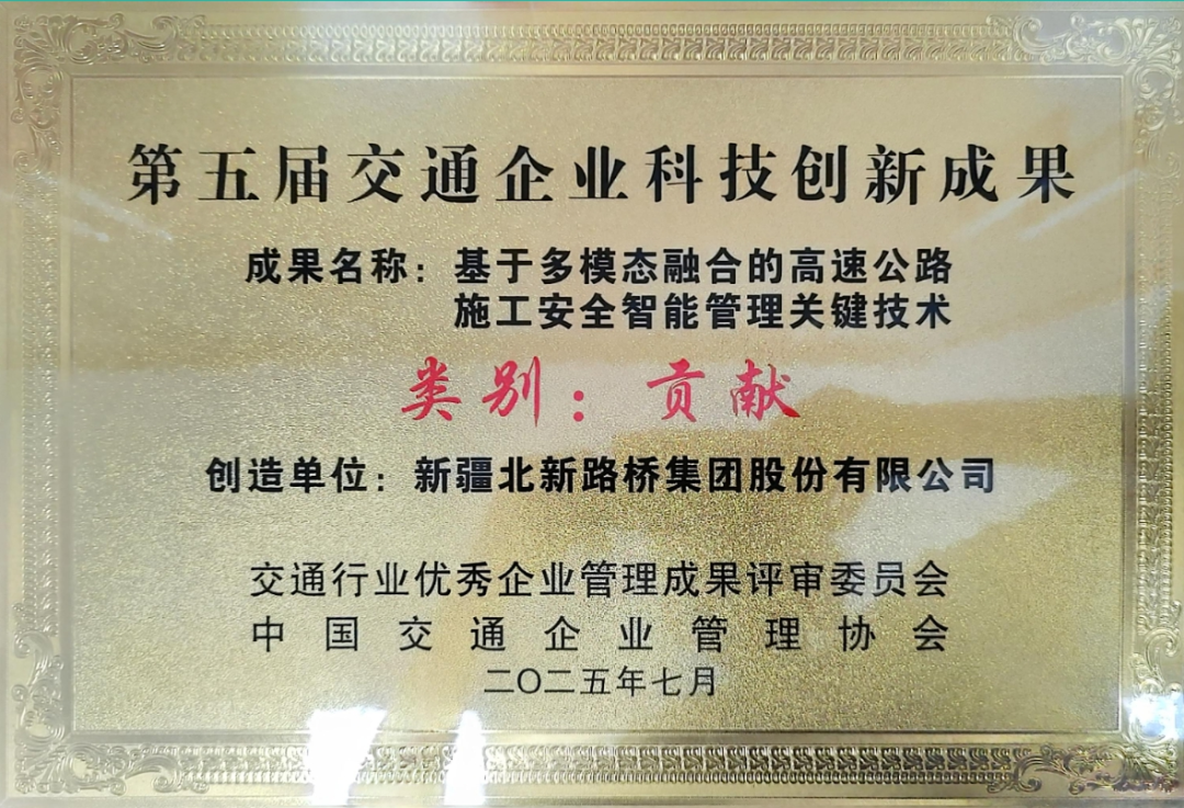 近日,由北新路桥集团总部机关项目管理中心(设计管理与企业技术中心)与广西北新建筑工程有限公司联合研发申报的“基于多模态融合的高速公路施工安全智能管理关键技术研究与应用”,成功斩获“第五届交通企业科技创新贡献成果”。这一荣誉不仅是对该技术成果创新性与应用价值的高度认可,更彰显了北新路桥集团在公路施工安全智能管理领域的硬核实力。