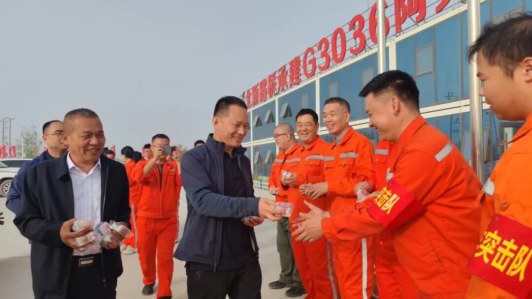 张斌动情地说:“你们的工作和生活环境虽然艰苦,但你们用行动证明了''只有荒凉的戈壁,没有荒凉的人生'',这是为国庆最好的献礼,集团永远和你们在一起肩并肩,是你们的坚强后盾!”