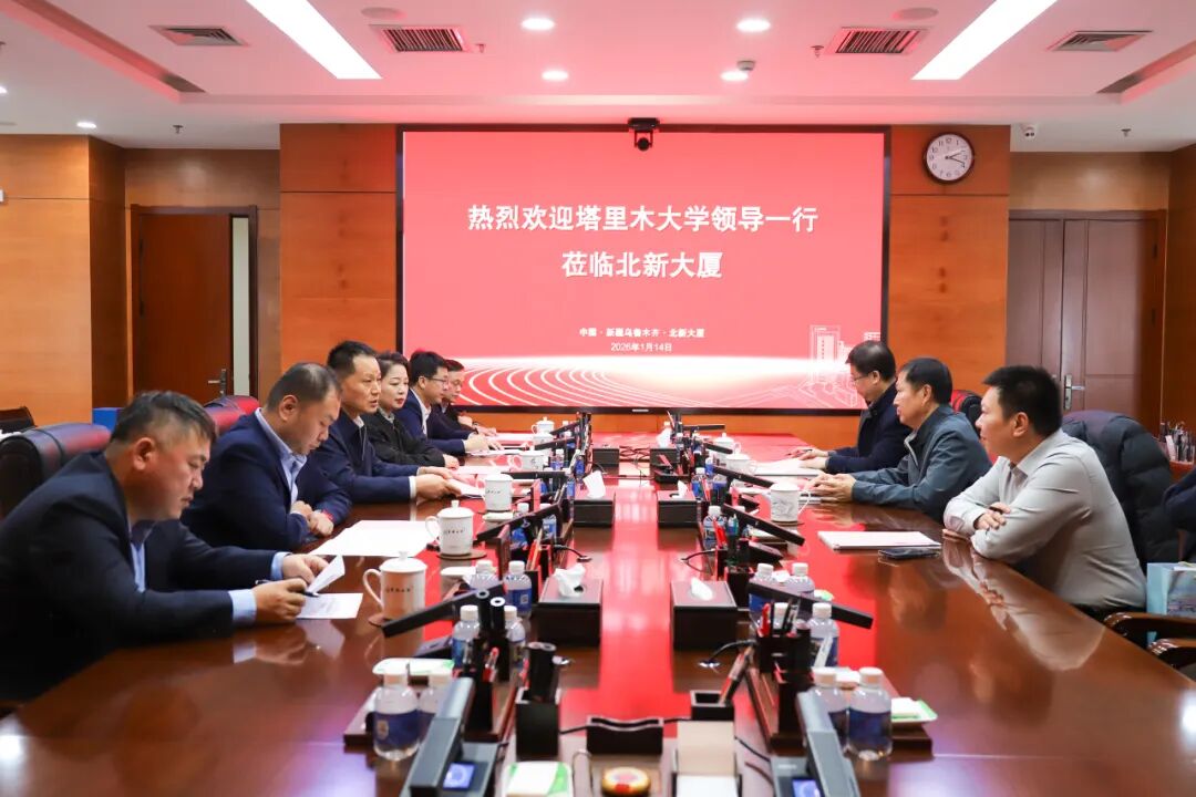 1月14日,塔里木大学党委常委、副校长张立秋一行莅临北新路桥集团总部北新大厦,双方围绕推动资源互补、深化校企合作等方面座谈交流。北新路桥集团党委书记、董事长张斌参加座谈。