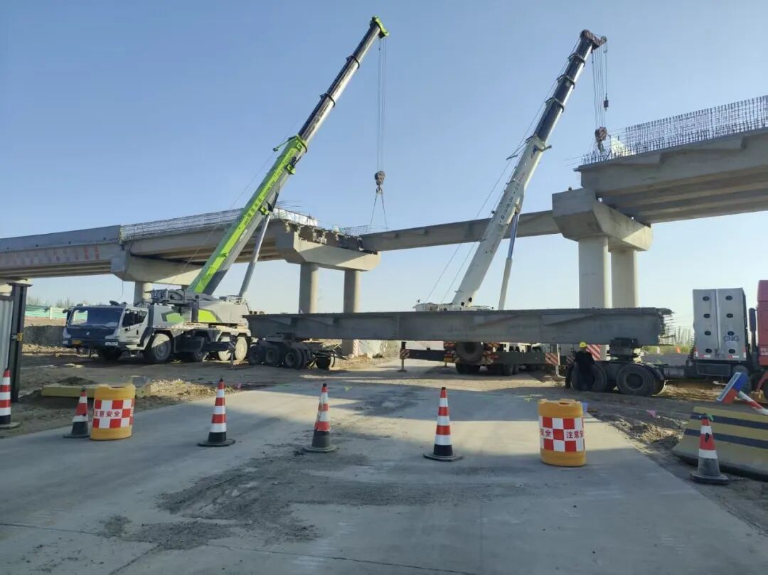 G3036阿阿高速一标项目金榆路互通E匝道桥梁架设