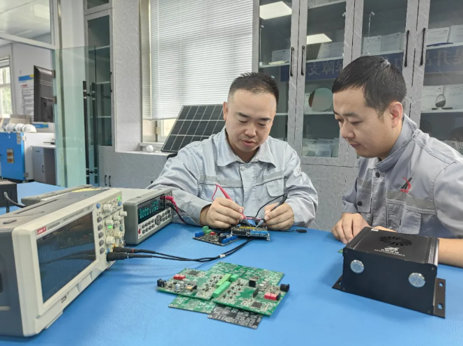 兵团级劳模工匠创新工作室“程蒴创新工作室”负责人程蒴与研发人员探讨技术