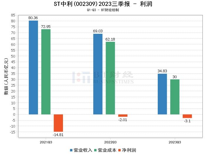 在利润方面,ST中利2023年三季度的营业收入为34.83亿元,相比上年同期的69.03亿元减少了49.54%。营业成本为30亿元,相比上年同期的62.18亿元减少了51.74%。毛利率从上年同期的9.93%提升到了本报告期末的13.86%。然而,公司的净利润为-3.09亿元,相比上年同期的-2.01亿元,亏损增加了54.16%。