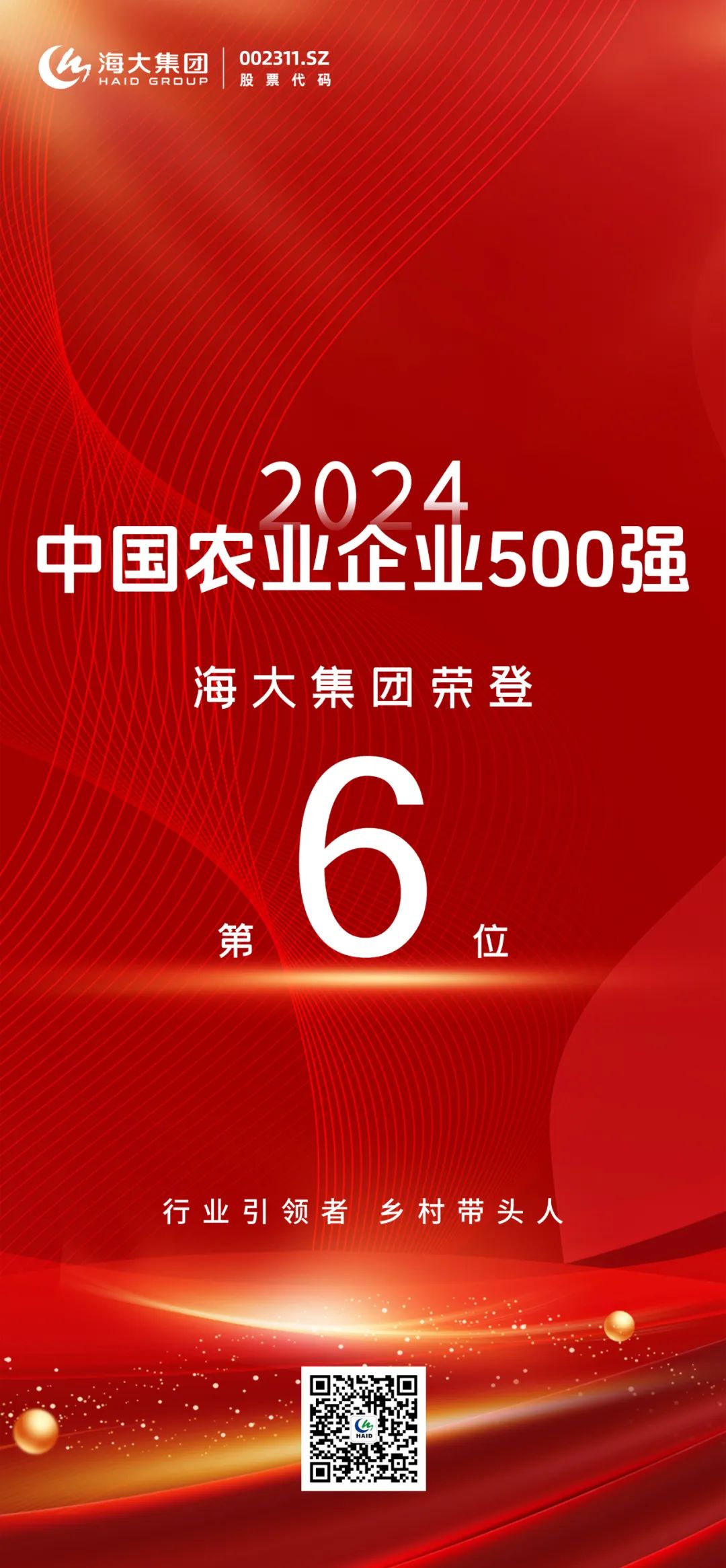 近日,由农民日报社组织评定的《2024中国农业企业500强》正式发布,海大集团跃升至榜单第6位。