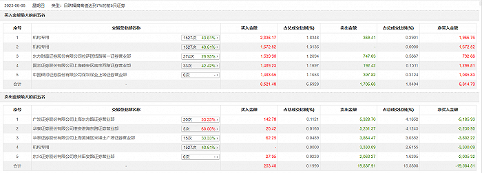 具体来看,机构买入4008.69万元,卖出3699.5万元,合计净买入309.19万元。此外,广发证券上海东方路证券营业部、华泰证券淮安淮海东路证券营业部分别卖出5328.70万元、5251.37万元;东方财富证券拉萨团结路第一证券营业部、国金证券上海静安区南京西路证券营业部分别买入1539.90万元、1489.23万元。
