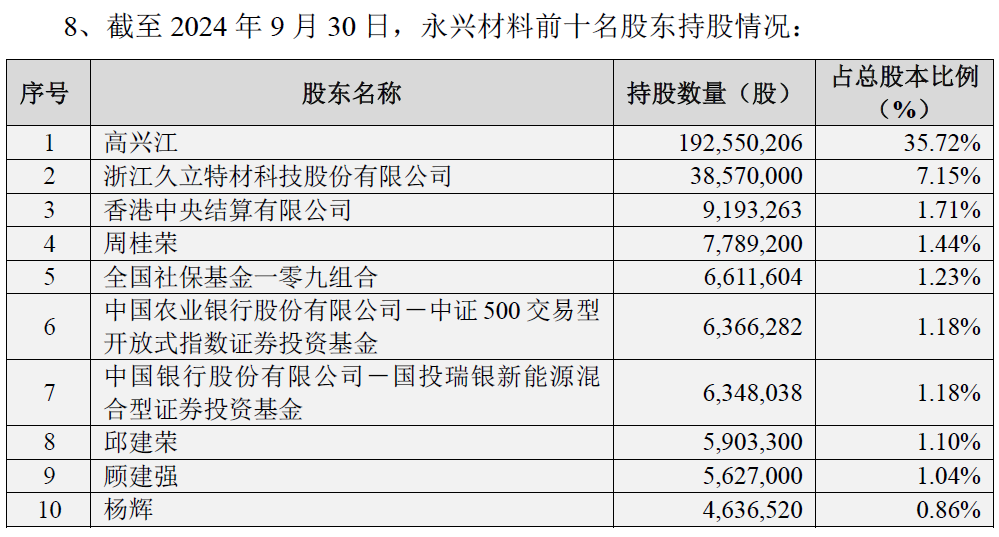 根据公告,截至2024年9月久立特材持永兴材料3857万股。久立特材选择在此时减持近一半股份,难免引发猜测。