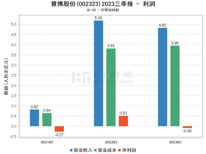 在利润方面,雅博股份2023年三季度的营业收入为4.82亿元,较上年同期的5.18亿元略有下降。营业利润为-610.86万元,相比上年同期的6187.63万元,公司在本期出现了亏损。营业成本为3.95亿元,较上年同期的3.81亿元有所增加。净利润为-945.59万元,相比上年同期的5123.9万元,公司在本期亦出现了亏损。