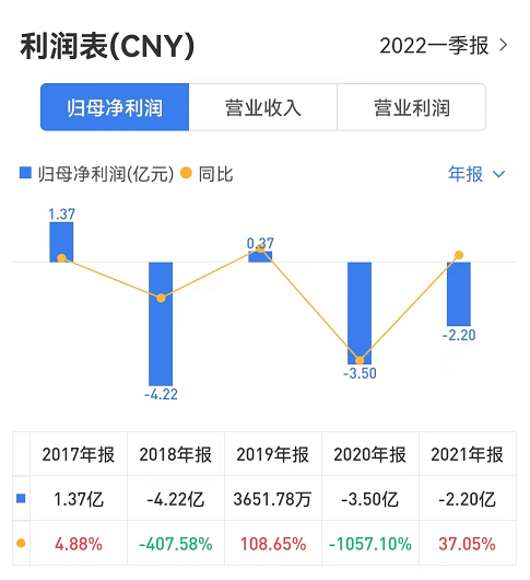 2021年,洪涛股份实现营业收入26亿元,同比降27.4%;归属于上市公司股东的净利润为-2.2亿元,去年同期为-3.5亿元,连续两年亏损。
