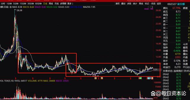 技术看,富安娜从2015年8月下旬至今,股价7元到12元之间做宽幅的箱体震荡。细分之后,2018年8月开始为第二阶段,股价在7元到9元之间做窄幅震荡。目前股价触及这个窄幅的箱体上沿,若突破,将面临宽幅的箱体上沿的压力。若还能突破,配置相关题材,或许富安娜还能重演当年雄风。