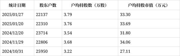 从2月11日公开信息显示,富安娜截至2025年1月27日公司股东户数为2.21万户,较上期(2025年1月20日)减少173户,降幅为0.78%,变化不大。