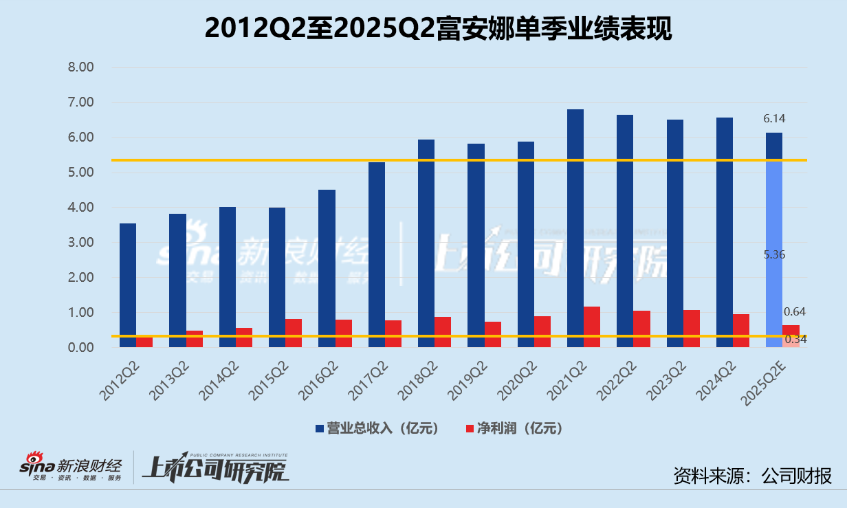 纵向对比往期二季度业绩,自2018年开始富安娜的单季营收规模就保持在6亿元上下,2021年第二季度收入一度高达6.81亿元。此次预计收入下限为5.36亿元,为近六年以来最差表现;归母净利润下限预计为3385.77万元,直接创下自2013年第二季度以来新低。
