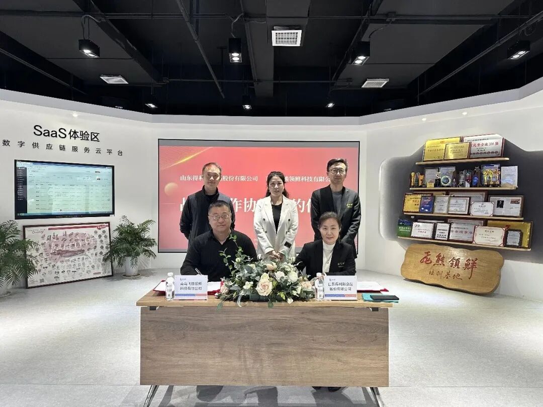 12月19日, 得利斯 与 青岛飞熊领鲜科技有限公司 签署战略合作协议。双方将基于各自核心优势,在供应链整合、产品研发创新、云工厂协作及股权合作等多个维度展开深度战略合作,携手推动进口冻品与深加工食品产业链的数字化、集约化升级,共创产业共赢新未来。