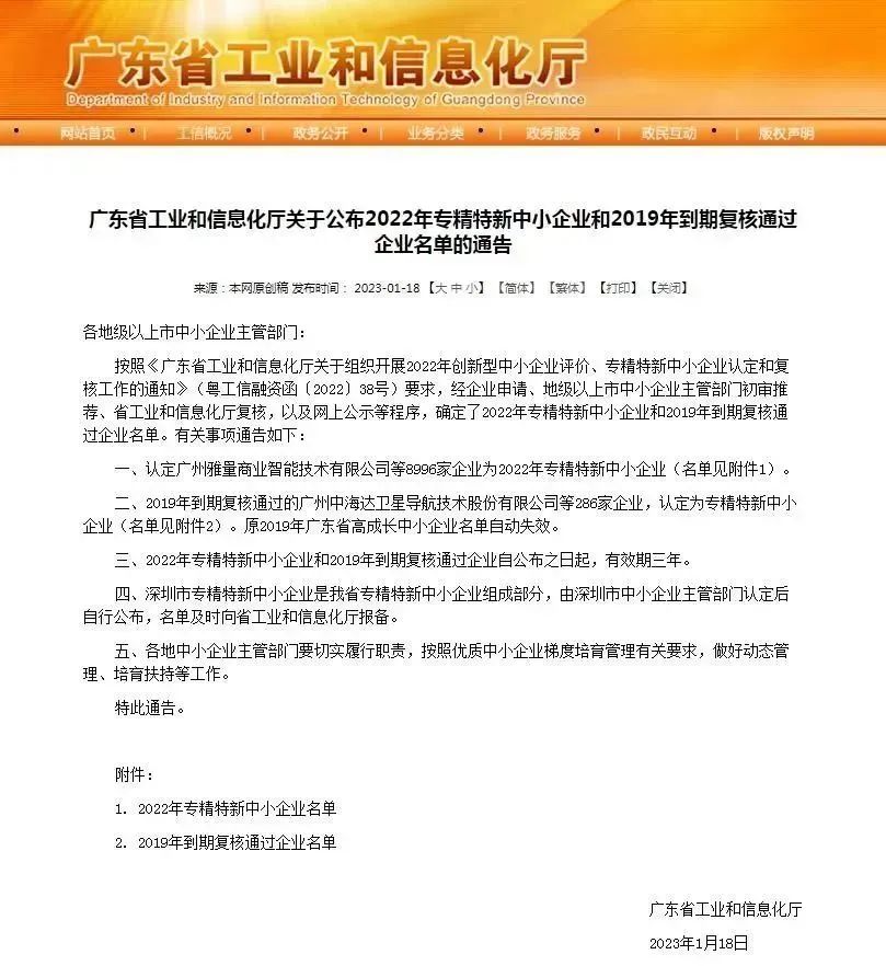 近日,广东省工业和信息化厅公布2022年专精特新中小企业和2019年到期复核通过企业名单。经地市初审、广东省工业和信息化厅复核等程序,井源机电顺利通过审核,被认定为广东省2022年“专精特新”中小企业。