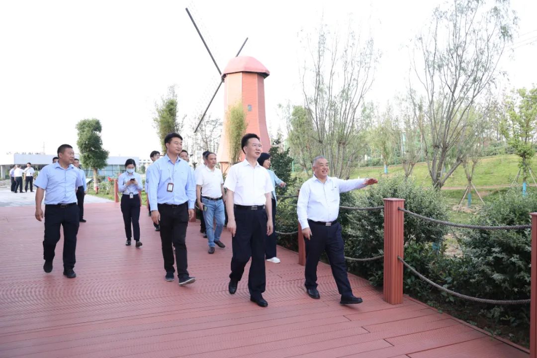 ▲曹松主任(前排右二)一行参观格林美新能源材料循环经济低碳产业园双碳湖