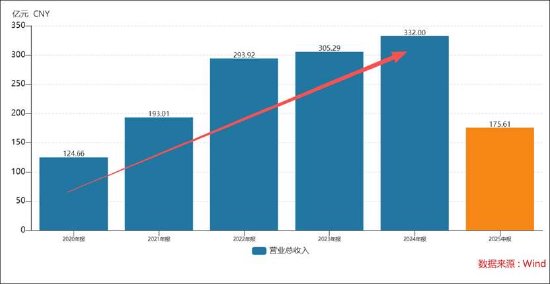 近年,公司营收规模持续膨胀,由2020奶牛的125亿元飙涨至2024年的332亿元。