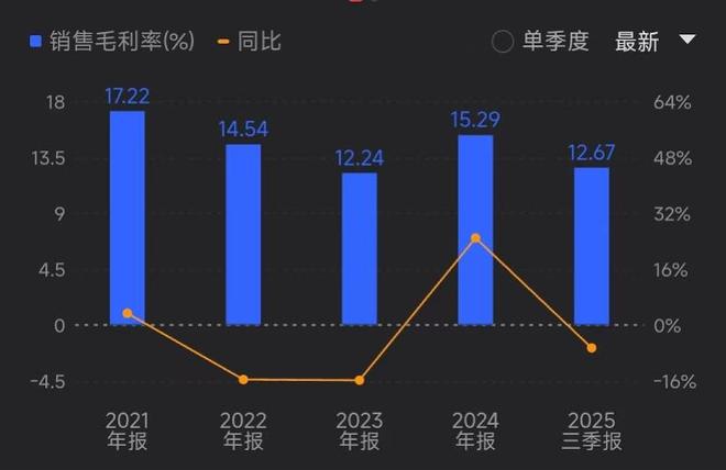 不过,净利润回暖并未带动盈利水平明显改善,公司毛利率、净利率持续处于低位。2024年格林美毛利率为15.3%,较2023年回升3.1个百分点,2025年前三季度再度下滑至12.67%;销售净利率已连续三年低于5%,2025年前三季度仅4.78%。
