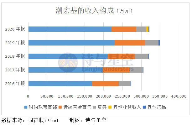 虽然卖起了包,但珠宝首饰还是主业,贡献的收入占比接近90%,毛利率通常在40%左右。