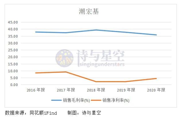 对于零售企业来说,销售费用的过度投入可能影响净利率。从近3年年报来看,潮宏基的净利率都不超过5%。