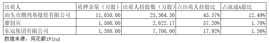 另外,从股权质押情况也可以发现资金流紧张的苗头。大股东已质押43.57%的股份,和另两位股东质押的股份总共占流通A股的15.75%。