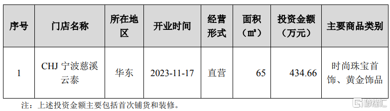 潮宏基(002345.SZ):11月份新增直营门店1家