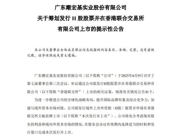 6月9日晚间,潮宏基发布公告显示,公司拟发行H股股票并在香港联合交易所有限公司上市的相关议案。