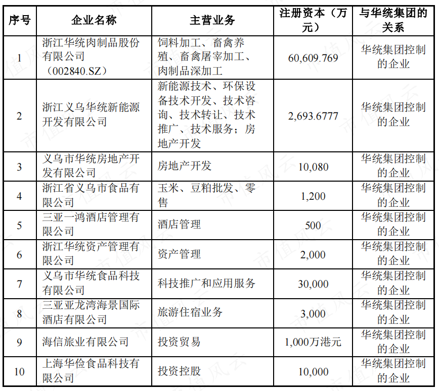 (注:公司公告,华统集团核心企业)
