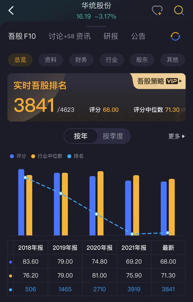 从这一路下行的市值风云“吾股评级”排名来看,华统股份近些年来财务表现越来越差劲,已经沦为全市场倒数。