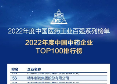 6月27日,米内网在南太湖举办了“2022年度中国医药工业百强系列榜单”颁奖仪式,隆重发布了5大子榜单和260个入选企业,再次展示了中国医药工业百强企业的专业力和影响力。精华制药集团股份有限公司再次登榜2022年度中国中药企业TOP100排行榜,相较2021年度更进一步,位列第56名。