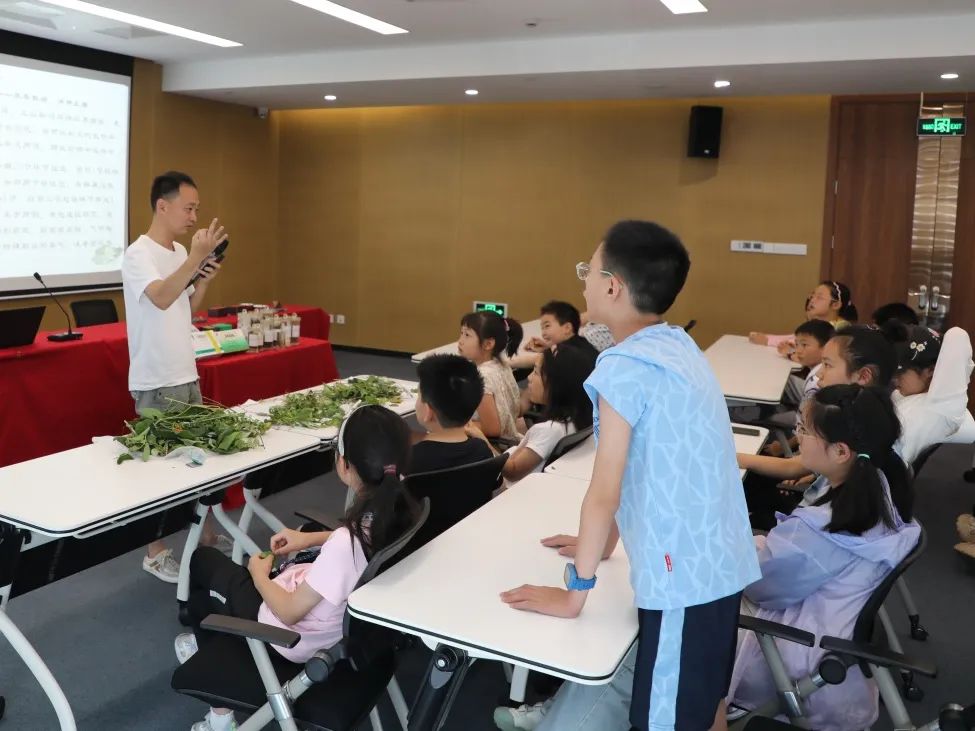 集团执业中药师何峰为此次研学精心准备了生活中常见的中草药:散瘀通络的芍药、清肝泻火的夏枯草、活血化瘀的银杏叶、疏散风热的薄荷以及清热解毒、祛痰排脓的金荞麦等等,生动地为学生们讲授了相关知识。同学们热情高涨,不时提出疑惑,何老师一一耐心解答。
