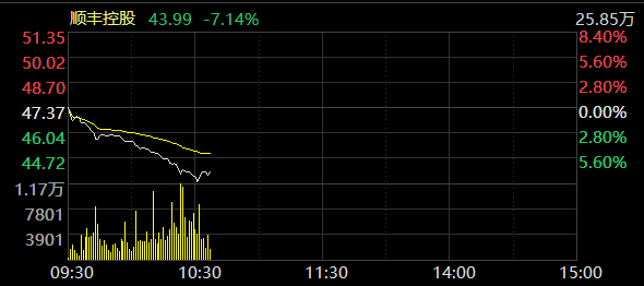 截至10:37,顺丰控股放量跌超7%,成交金额超10亿元,股价创近15个月新低。
