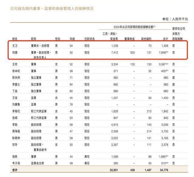 在管理层薪酬方面,报告也透露了一些有趣的信息。顺丰控股的董事长、总经理王卫在2024年从公司获得的税前报酬总额为130.9万元。而与此同时,公司的董事、副总经理、财务负责人何捷的税前报酬总额则高达784.8万元,远超王卫。