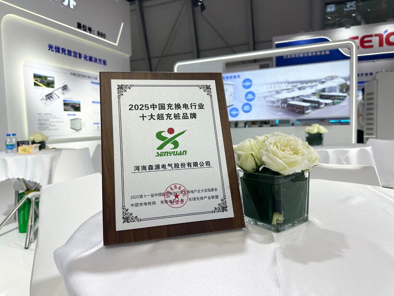 在本届展会上,森源电气凭借卓越的产品设计、过硬的产品质量、创新的技术实力、优质的客户服务,荣膺“2025中国充换电行业十大超充桩品牌”。作为中国最权威、专业的充换电品牌评选活动之一,这一奖项是衡量企业实力和市场地位的重要标杆。