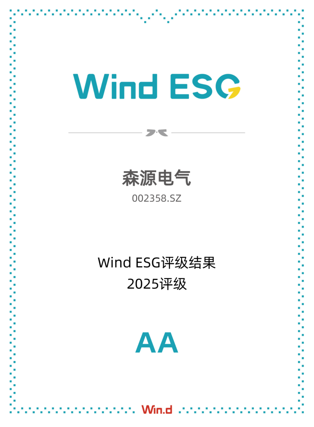 “ESG价值传递奖”作为资本市场中具有广泛影响力的重要奖项,旨在表彰在ESG理念传播、社会责任践行及投资者关系管理方面表现优异的上市企业。此次获奖,不仅是对 森源电气 推动ESG沟通与价值传递、促进资本市场正向引导等方面的认可,也是对其卓越ESG实践的有力印证——根据 Wind ESG评估, 森源电气 2024年度ESG评级已达AA级,在行业393家参评公司中高居第13位,充分彰显了公司在可持续发展道路上的示范引领作用。